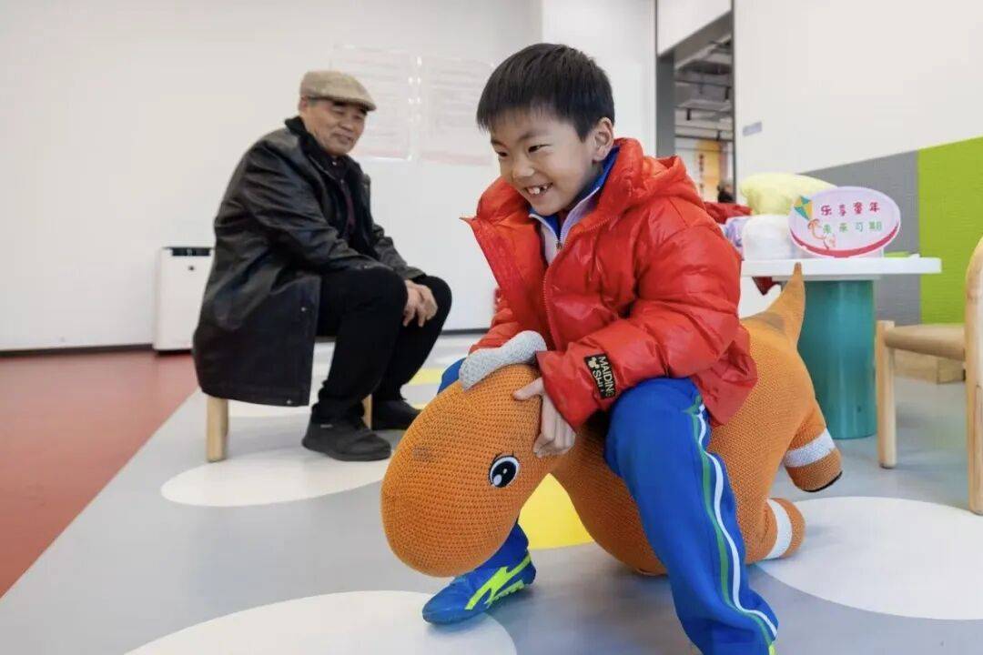 社区工作人员介绍,这处“老幼共融区”是社区服务站在升级改造时特意规划的。“场地有限,但老年活动和幼儿托管需求都真实存在,于是,兼具‘临时托育’与‘老年活动’功能的区域应运而生。”