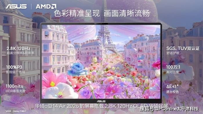 此次的无畏Pro新品在便携性与续航体验上再次提升,华硕无畏Pro14 2026整机轻约1.39kg,配备2.8K 120Hz OLED华硕好屏,80Wh大容量电池提供至高27小时持久续航。而16英寸的华硕无畏Pro16 2026轻约1.65kg,配备2.5K 165Hz OLED华硕好屏,提供至高20小时持久续航。